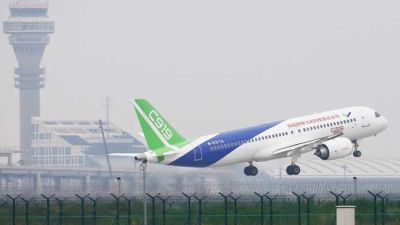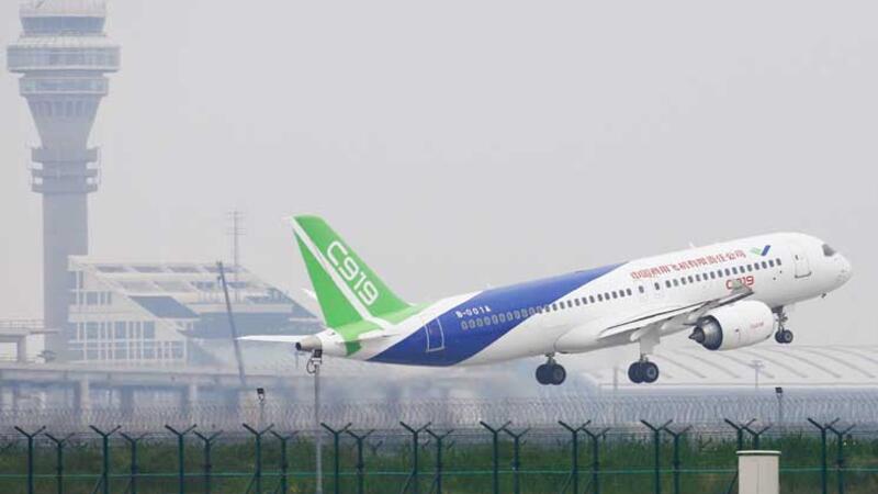 أقلعت طائرة من طراز “سي919″ للرحلات المتوسطة من انتاج الصين صممت لمنافسة المجموعتين العملاقتين ايرباص وبوينغ، للمرة الاولى الجمعة في تقدم تقني يعكس طموحات بكين في هذا المجال.