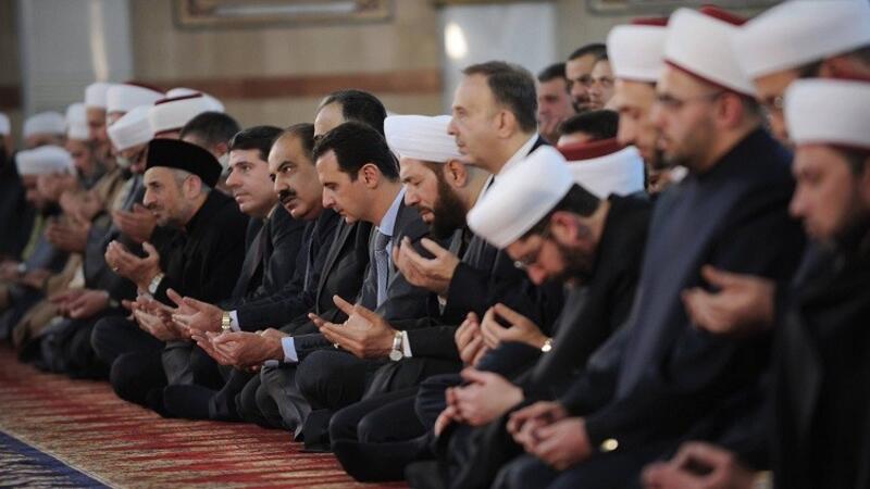 الأسد يحضر ذكرى المولد النبوي الشريف في احد مساجد دمشق