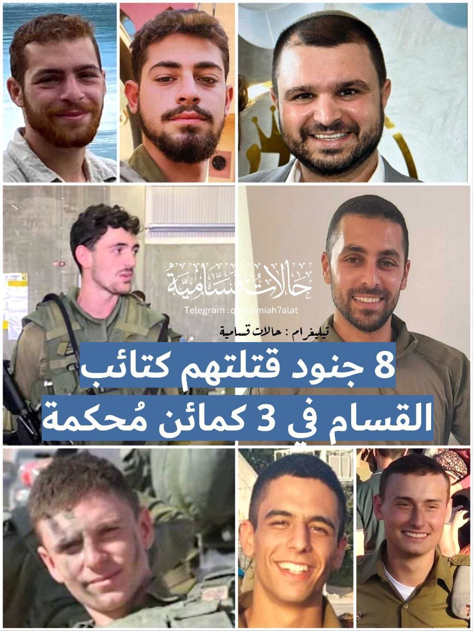 وكشف جيش الاحتلال عن أسماء 8 جنود قتلوا في ثلاثة كمائن منفصلة  على يد كتائب القسام هم : اللواء أوهاد عاشور ، الرائد إلياهو أوحانا ، الرائد نداف فرحي ، الرقيب إيتمار شيمن ، الرقيب جال هيرشكو ، الرقيب أوريل باشان ، الرقيب ديفد ، اللواء إليساف شوشان .