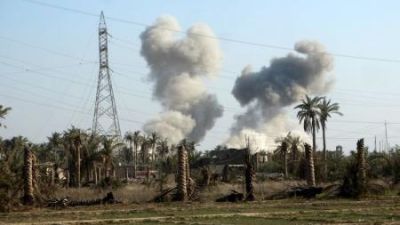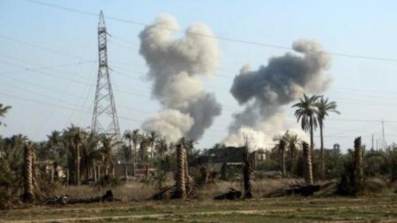 أدخنة تتصاعد من مبنى أصيب في غارة جوية في مدينة الرمادي