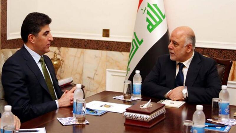 رئيس وزراء العراق حيدر العبادي مع رئيس وزراء كردستان نيجيرفان بارزاني