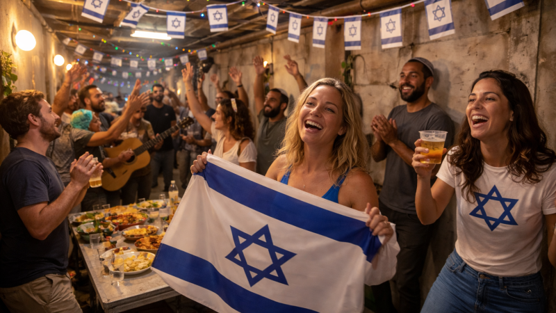 قام المواطنون الإسرائيليون بحجة التخفيف من كآبة الحياة تحت الأرض في الملاجئ، إحياء احتفالات في ظل التوترات الأمنية المستمرة.