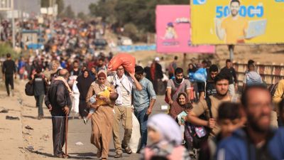 : عائلات فلسطينية تغادر مدينة غزة والأجزاء الشمالية من القطاع باتجاه جنوب غزة. 9 تشرين الثاني، 2023م، وكالة الصحافة الفرنسية.