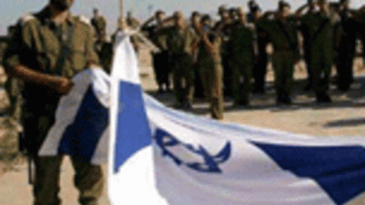 انزل الجيش الاسرائيلي علم الدولة العبرية خلال احتفال اقيم في مستوطنة نيفيه ديكاليم في قطاع غزة ايذانا ببدء الانسحاب النهائي الكامل من القطاع بعد 38 سنة من الاحتلال المباشر.