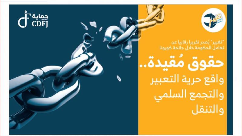 وأكد التقرير الذي يناقش تأثير جائحة كورونا على الحق في حرية الرأي والتعبير، والتجمع السلمي، والتنقل، أن التشريعات المتعلقة بحرية التعبير لم تخضع لتغيير جوهري، حيث لم تقدم الحكومة أي مشروع قانون جديد، أو تعديلات مقترحة باستثناء أمر الدفاع رقم (8).