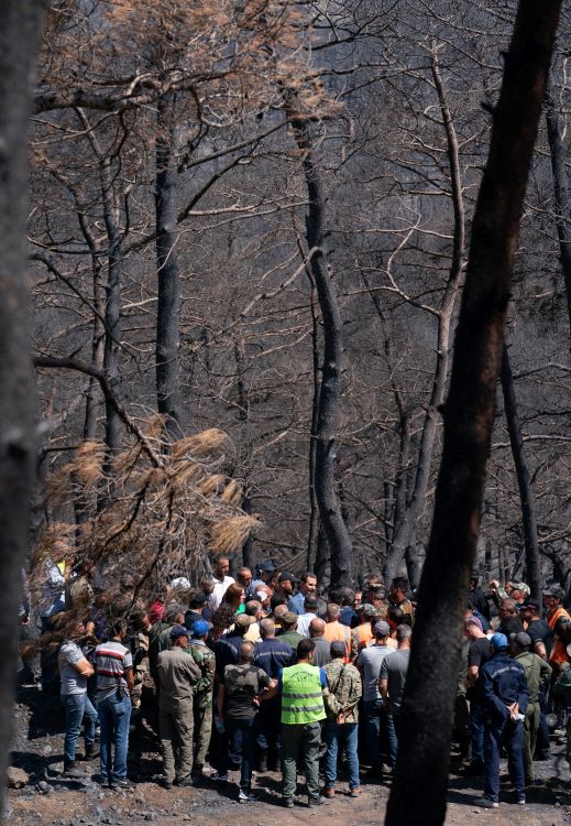 ونشرت الرئاسة السورية عبر حساباتها في مواقع التواصل صورا للاسد وهو يتحدث مع حشد من عناصر فرق الاطفاء الامن والجيش وسط منطقة غابات احرقتها النيران بالكامل.