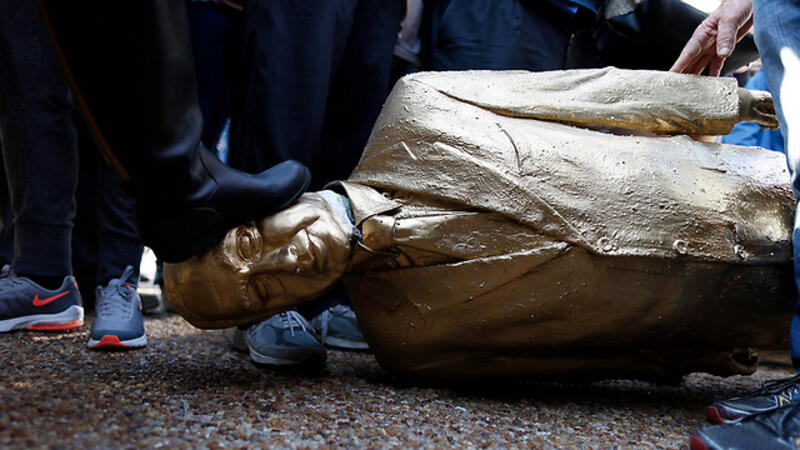 الاطاحة بتمثال "الملك" نتانياهو في تل ابيب (فيديو)