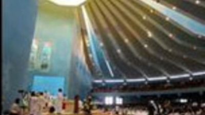 وغصت الكنيسة التي تتسع لحوالى خمسة الاف شخص بالمصلين كما نقل الاحتفال عبر شاشات عملاقة الى الالاف الذين لم يجدوا مكانا داخل الكنيسة التي تعلوها قبة حديثة التصميم من دون صليب وتحيط بها اعمدة اسمنتية ضخمة.