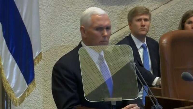 وفي وقت سابق أفادت وكالة "رويترز" بأن الامن الاسرائيلي منع نوابا من الكنيست الإسرائيلي، من الاعتراض على كلمة نائب الرئيس الأمريكي مايك بينس واقدمت على اخراجهم من القاعة بالقوة ورفع النواب العرب لافتات احتجاجية وصورا للقدس تعبيرا عن رفضهم لزيارة بينس للمدينة المحتلة
