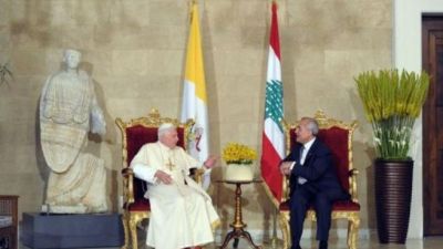 وكان البابا يتحدث في مقر الرئاسة اللبنانية في بعبدا قرب بيروت حيث التقى رئيس الجمهورية ميشال سليمان ورئيس الحكومة نجيب ميقاتي ورئيس المجلس النيابي نبيه بري مع افراد عائلاتهم. ثم تكلم امام مئات الشخصيات السياسية والدينية الذين دعوا الى القصر.