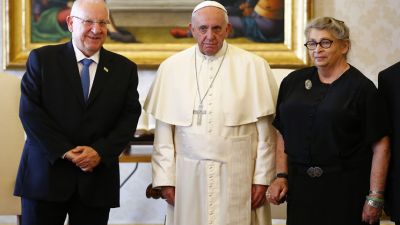 استقبل البابا فرنسيس الرئيس الاسرائيلي رؤوفين ريفلين الخميس للمرة الاولى، في اطار متوتر جراء الخلافات الكثيرة بين الكنيسة ودولة اسرائيل وخصوصا بعد اعتراف الفاتيكان بدولة فلسطين.