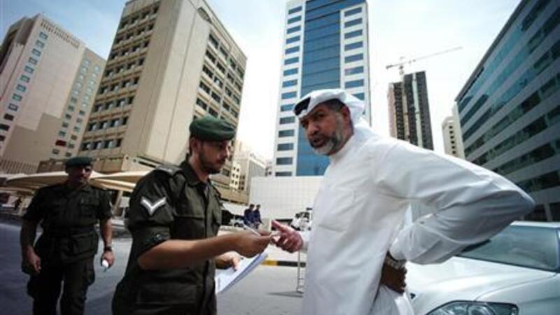 شرطي يتحقق من هوية رجل قبل دخوله لمحكمة في المنامة