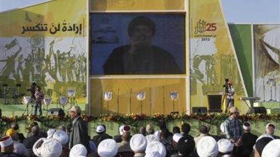 وكان نصر الله قال في خطاب له يوم السبت بمناسبة الذكرى الثالثة عشرة لانسحاب إسرائيل من جنوب لبنان إن سوريا ولبنان يواجهان تهديدا ممن سماهم "تكفيريين".