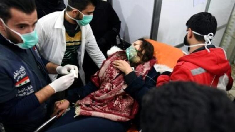 واتهم نظام الرئيس السوري بشار الاسد فصائل مسلحة بتنفيذ هجوم ب"غاز سام" السبت أسفر عن اصابة العشرات بمشاكل في التنفس ودفع روسيا الى شن غارات على "جماعات ارهابية".