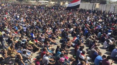 وقال ابو حسن (65 عاما) وهو من اهالي مدينة الصدر وكان يرتدي ملابس عربية ويجلس عند احد الخيم الى جانب اثنان من ابناءه وثلاثة من اخوته “كلنا هنا وكل الشعب العراقي يطالب بتحسين اوضاع البلاد ومعالجة الفساد وطرد الذين سرقوا اموال البلاد”.
