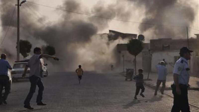 دخان يتصاعد بعد سقوط قذيفة مورتر في أكاكالي على الحدود السورية التركية