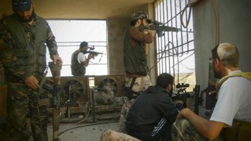 افراد من الجيش السوري الحر في موقع دفاعي باحد المنازل بحمص