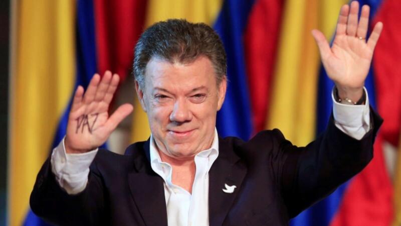 وفاز سانتوس الجمعة بجائزة نوبل للسلام للعام 2016 تكريما لجهوده في إنهاء خمسة عقود من الحرب في بلاده.