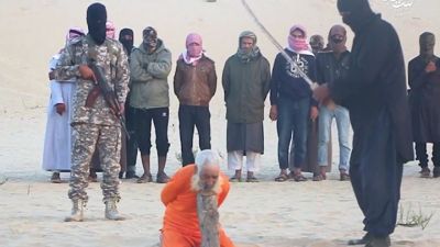بث فرع تنظيم الدولة بشبه جزيرة سيناء في مصر تسجيل فيديو على الإنترنت، الثلاثاء، لعملية ذبح رجلين قال التنظيم إنهما أدينا بممارسة السحر والكهانة.
