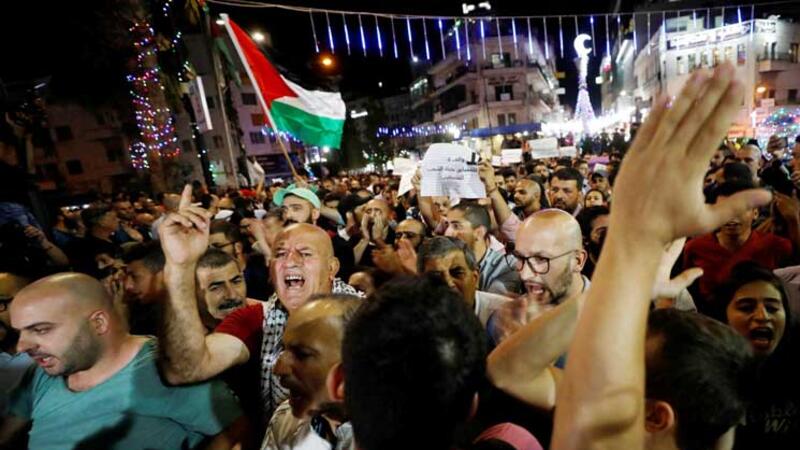 وخرجت في رام الله مسيرة يوم الأحد شارك فيها المئات للمطالبة بدفع رواتب الموظفين وشهدت عراكا محدودا بالأيدي بين المشاركين وعناصر من الأجهزة الأمنية بلباس مدني.