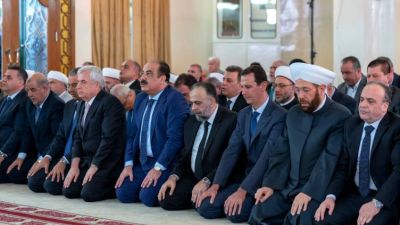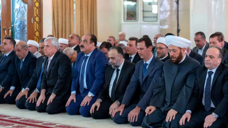 وعرض التلفزيون السوري صورة مباشرة للرئيس الأسد وهو يؤدي صلاة العيد.