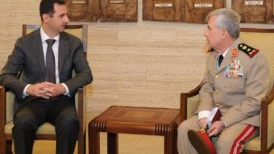 وبث التلفزيون السوري الرسمي صورا لرئيس هيئة الاركان الجديد وهو يؤدي القسم امام الرئيس السوري.