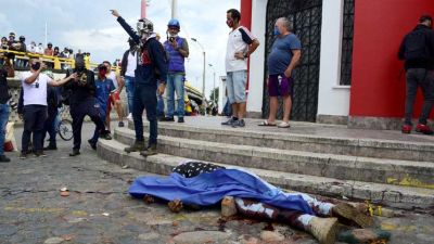وأظهرت لقطات مصوّرة رجلاً ممدّداً على الأرض ورأسه يسبح في بركة من الدماء، وبالقرب منه رجل يحمل مسدّساً ويطارده حشد من المحتجّين على وقع طلقات نارية.