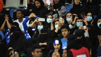 نساء سعوديات متفرجات خلال مباريات لكرة القدم في الرياض