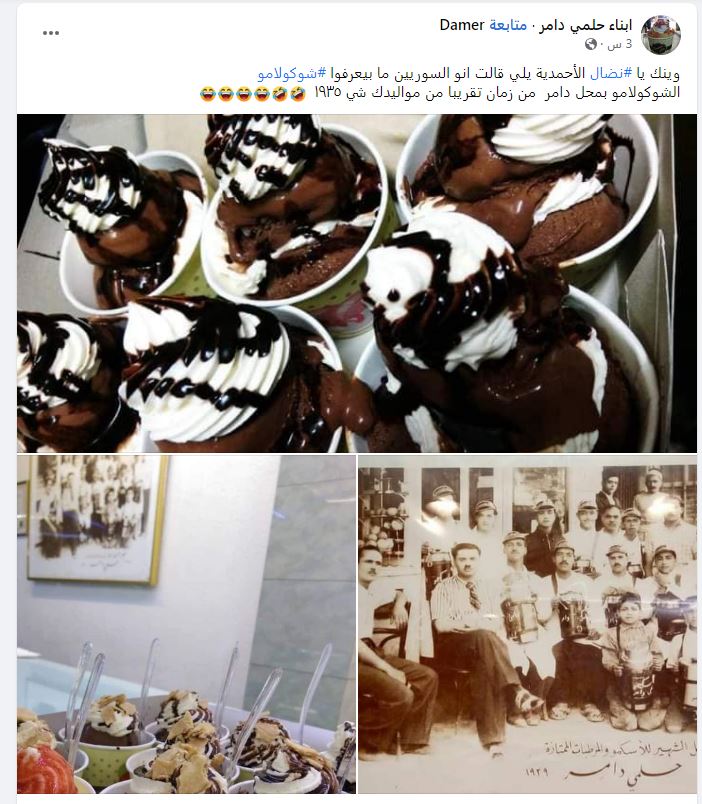 ابرز تلك التعليقات كانت من محلات ابناء حلمي دامر السورية على الفيس بوك اذا قالت : وينك يا #نضال الأحمدية يلي قالت انو السوريين ما بيعرفوا #شوكولامو الشوكولامو بمحل دامر من زمان تقريبا من مواليدك شي ١٩٣٥