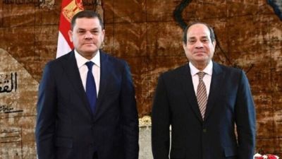 الرئيس المصري عبد الفتاح السيسي، ورئيس الحكومة الليبية الجديدة عبد الحميد الدبيبة