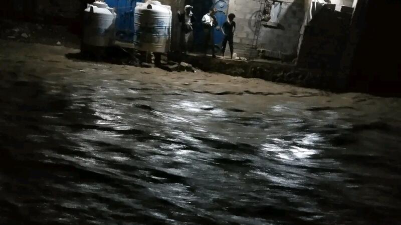 سيل كبير نازل من وادي الخشب مرورا بمخيم الجفينة وانفجار مصدات السيول بالجفينه ليغمر الماء بعض منازل النازحين بالمخيم .. نهيب بشركاء العمل الانساني بمحافظة مأرب بسرعة الاستجابة وإغاثة الأسر المنكوبة