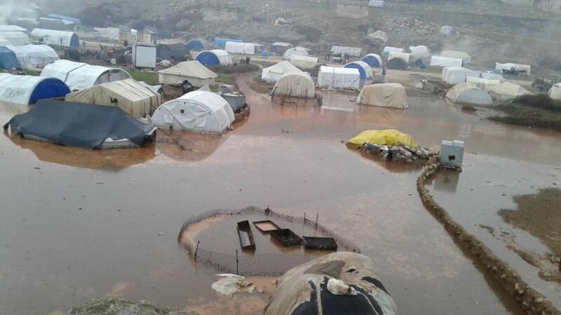 وقال المرصد السوري لحقوق الإنسان: "أدت السيول الناجمة عن العاصفة المطرية الشديدة، بريف إدلب، إلى الحاق أضرارا جسيمة بعدد من المخيمات التي تأوي النازحين"