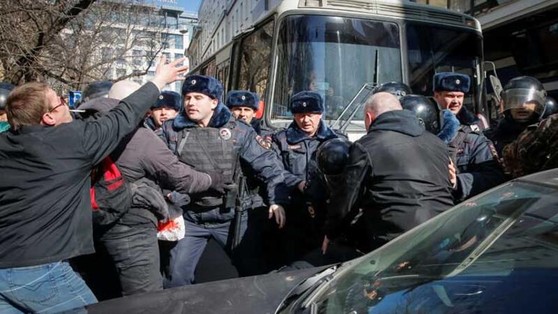 اعتقلت الشرطة الروسية عشرات الأشخاص في احتجاجات في مختلف أرجاء روسيا الأحد منهم الزعيم المعارض اليكسي نافالني بعد أن خرج ألوف إلى الشوارع للاحتجاج على الفساد والمطالبة باستقالة رئيس الوزراء ديمتري ميدفيديف.