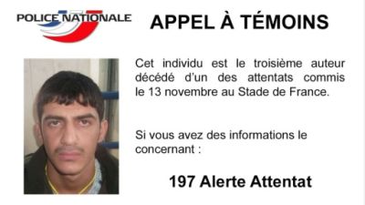 نشرت الشرطة الفرنسية الاحد صورة للتمكن من التعرف "على هوية ثالث انتحاري فجر نفسه في ملعب دو فرانس" شمال باريس، فيما تستمر حالة التأهب القصوى في بروكسل في مواجهة تهديدات “جدية ووشيكة” بحصول اعتداءات مماثلة لتلك التي وقعت في العاصمة الفرنسية.