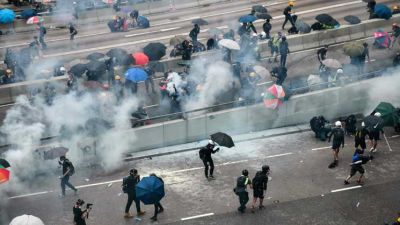 أطلقت الشرطة الغاز المسيل للدموع على مجموعة صغيرة من متظاهري هونغ كونغ تجمعت أمام مبنى المجلس التشريعي (البرلمان).