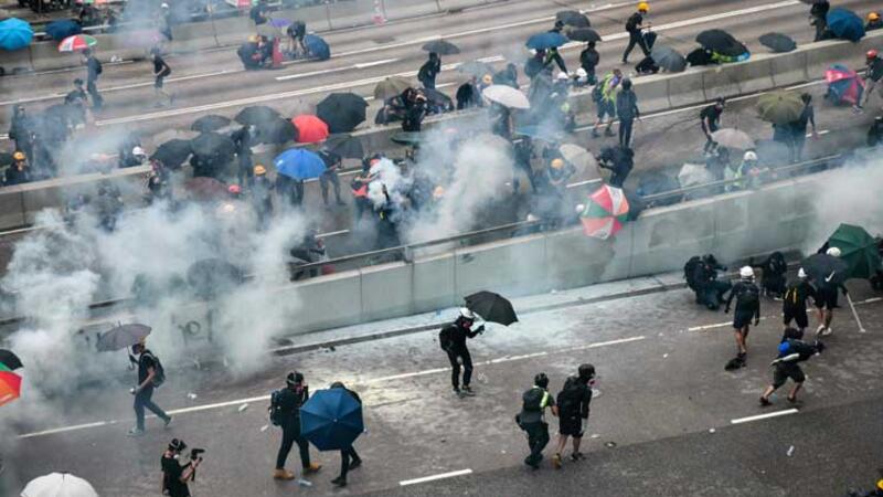 وتشهد هونغ كونغ (اقليم صيني يتمتع بالحكم الذاتي) مظاهرات مناهضة للحكومة منذ التاسع من حزيران/ يونيو بسبب مشروع قانون كان من شأنه أن يسمح بتسليم المطلوبين إلى الصين. (د ب أ)