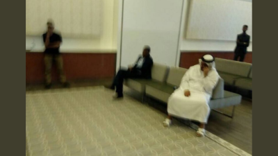 السفير الإماراتي  الحمادي خلال انتظاره في صالة يعتقد أنها داخل مركز أمني