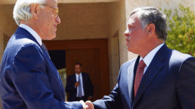 وذكرت وكالة الأنباء الأردنية (بترا) الأحد ان اللقاء تناول جهود تحقيق السلام في المنطقة، حيث اطلع المبعوث الأمريكي العاهل الأردني على التطورات التي تشهدها المساعي التي يبذلها وزير الخارجية الأمريكي جون كيري لتحقيق تقدم ملموس في مفاوضات السلام بين الفلسطينيين والإسرائيليين.
