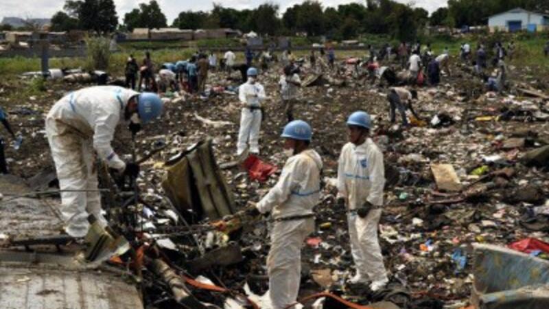 تحطمت طائرة الانطونوف ايه ان12 والمسجلة في طاجيكستان وتستثمرها شركة للنقل متمركزة في جوبا في الرابع من تشرين الثاني/نوفمبر بعيد اقلاعها من عاصمة جنوب السودان في جزيرة صغيرة في النيل الابيض تبعد نحو كيلومترين عن جوبا.
