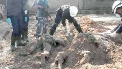 وأوضح المصدر أنه ” يجري البحث حاليا عن مقابر اخرى يعتقد ان تنظيم الدولة الاسلامية (داعش) قام بدفن ضحاياه فيها”.