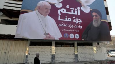 التقى الحبر الأعظم البابا فرنسيس، صباح اليوم، المرجع الديني في العراق، علي السيستاني، في منزله الصغير الواقع في مدينة النجف جنوبي العراق.