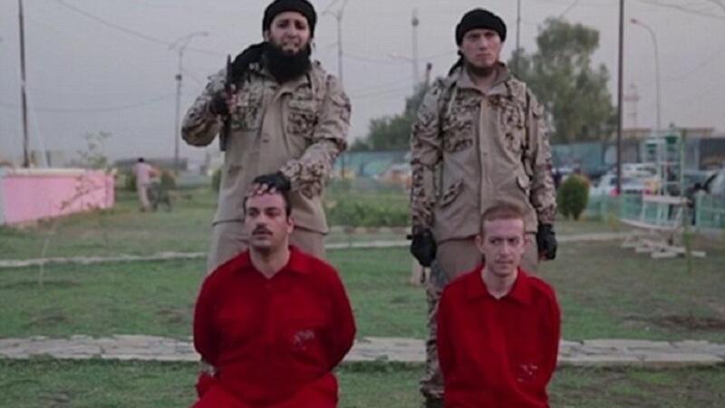 وأفادت صحيفة "ديلي مايل" البريطانية، 1 أغسطس/آب، بأن شريط الفيديو هذا، الذي يستمر 7 دقائق، نشرته وسائل إعلامية تابعة للتنظيم في 20 يوليو/تموز، موضحة أنه يظهر فيه مسلحان غير ملثمين مسلحان بالسكاكين يرتديان زيا ميدانيا، وهما يعدمان بقطع الرأس رهينتين إتهمهما التنظيم بالتجسس لصالح التحالف الدولي.