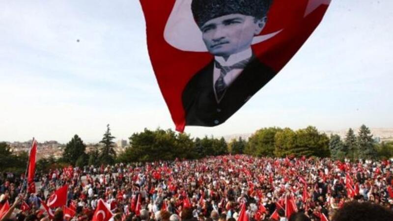 وفي يوم الاثنين الماضي، تجمع بضع مئات من الناس الذين يلوحون بأعلام تحمل صورة أتاتورك في شارع الاستقلال، وهو شارع للمشاه يمتلئ بالمتاجر والمقاهي، ويعتبر مركز الحياة الليلية الصاخبة في إسطنبول، ويرجح أن ترتدي القلة القليلة من النساء المحتشمات فيه أغطية رأس من ماركة «بيربيري» أكثر من النقاب الشائع في أماكن مثل المملكة العربية السعودية. ومن بين الهتافات التي ارتفعت في هذا الحشد: «تركيا علمانية وسوف تظل علمانية»، وارتفع هتاف آخر يقول: «نحن جنود مصطفى كمال أتاتورك». وانضمت نيلغون تيكير، ممرضة، إلى المسيرة مع زوجها وابنها البالغ من العمر 4 سنوات وكانت تدفعه في عربة أطفال، حيث قالت: «لا نريد نظاما أصوليا كما في إيران». وتحرك مراد كوجوك (30 عاما)، صاحب مطعم، مع المسيرة وهو يرتدي قميصا رياضيا أسود اللون يحمل صورة أتاتورك، وقال: «هذه ثورة مضادة. اليوم هو يوم تركيا الأكبر. إنه ميراثنا من مصطفى كمال أتاتورك».