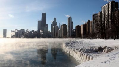 وعرضت قنوات التلفزيون المحلية صورا لكتل ضخمة من الجليد تملأ نهر شيكاجو وبحيرة ميشيجان.