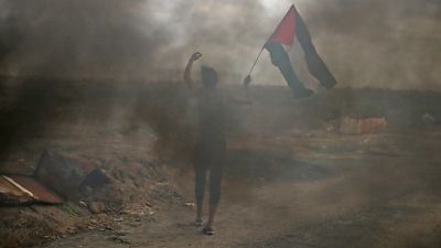 شاب فلسطيني خلال تظاهرة في الضفة الغربية