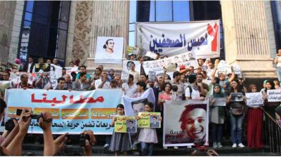 جانب من الاحتجاجات أمام نقابة الصحفيين المصريين
