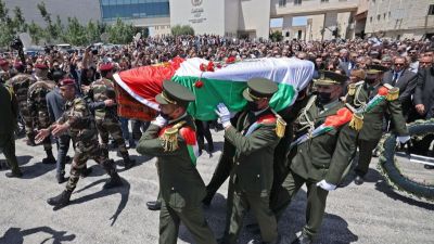 مراسم تشييع ابو عاقلة في مقر الرئاسة الفلسطينية
