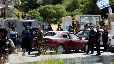 واعلن مستشفى القدس أن الاسرائيليين هما زوج وزوجة في الخمسينات وهما يعالجان من جروح طفيفة.