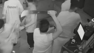 وفي فيديو نشره حساب "المجلس" تظهر مجموعة من الشبان وهم يدخلون إلى المقهى ومن ثم يبدأ تلاسن وتدافع بين عدد من الشبان، فيما يقوم شابان اثنان برفع آلة حادة (ساطور).