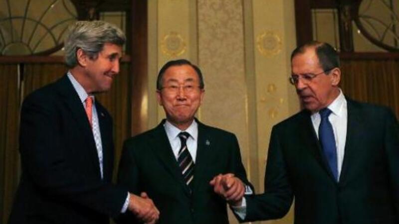 وسيجلس الامين العام للامم المتحدة بان كي مون على طاولة مستطيلة في اول قاعة الاجتماعات الكبيرة الى جانبه موفد الامم المتحدة وجامعة الدول العربية الاخضر الابراهيمي. ويجلس على طرفي الطاولة وزيرا الخارجية الاميركي جون كيري والروسي سيرغي لافروف.